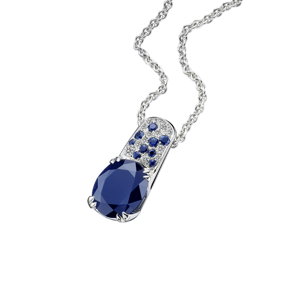 Pendentif « Nuit d’amour », or blanc, saphir australien, pavage saphirs et diamants